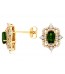 Prepare to be captivated by these magnificent 14K yellow gold earrings! Each features a vibrant oval Russalite, a deep green gem, exquisitely framed by a dazzling halo of .39 CTW diamonds that extend into a captivating ornate design.