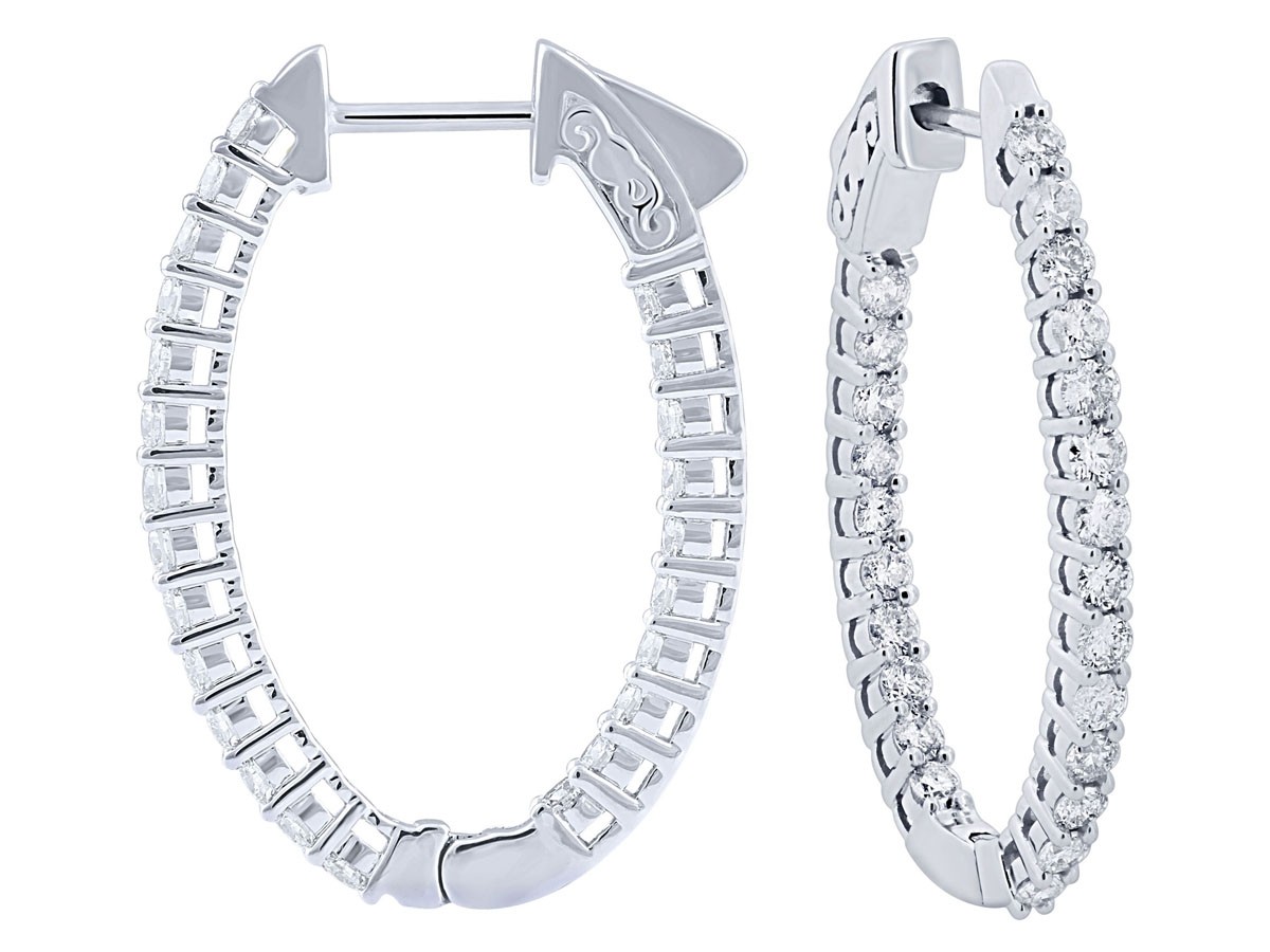 Unleash breathtaking brilliance with these 14K White Gold Diamond Loops. Glimmering with an exquisite array of radiant round diamonds on one captivating side, these hoops are designed to mesmerize.