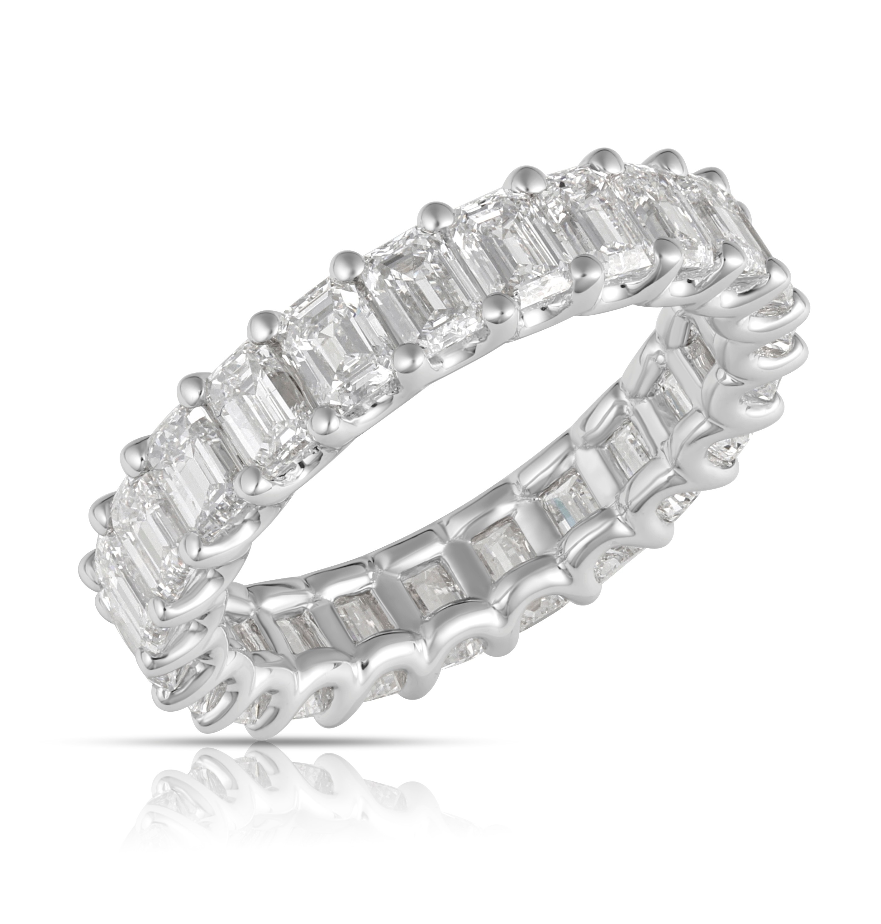Unveil a spectacle of light with this magnificent lab-grown diamond eternity band. Twenty-eight striking emerald-cut stones, totaling an impressive 2.67 carats, create a captivating river of sophisticated sparkle that perfectly encircles your finger.