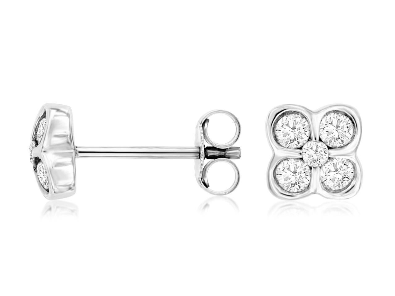 Sparkle with enchanting elegance! These exquisite 14K white gold diamond earrings feature a captivating floral cluster design, each showcasing a brilliant .50 carat total weight of diamonds. Expertly bezel set, they offer a sleek, modern aesthetic and secure brilliance that truly shines.