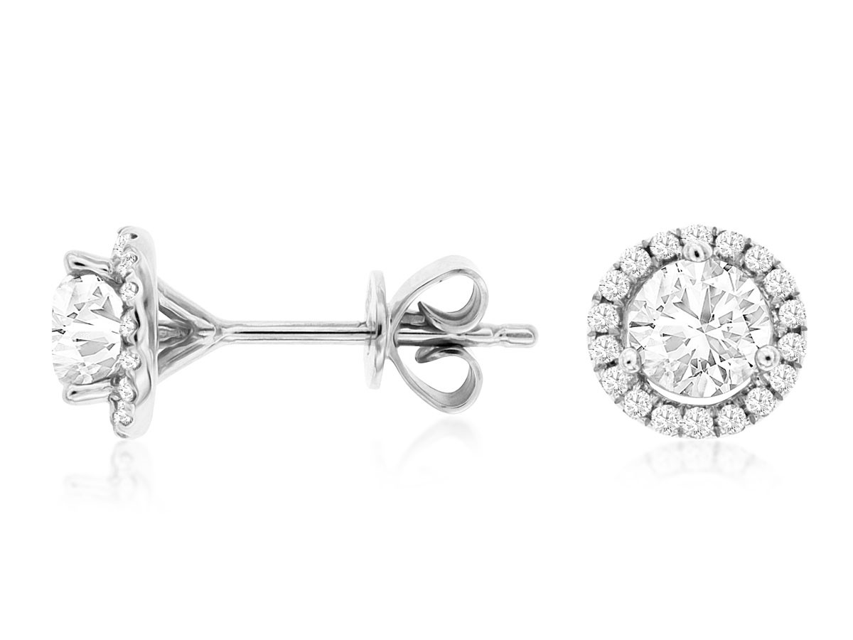Unleash breathtaking brilliance with these Classic Diamond Halo Stud Earrings! Each magnificent round diamond is encircled by a dazzling halo, amplifying its sparkle to capture every gaze. Crafted in radiant 14K white gold, they promise an exquisite glow.