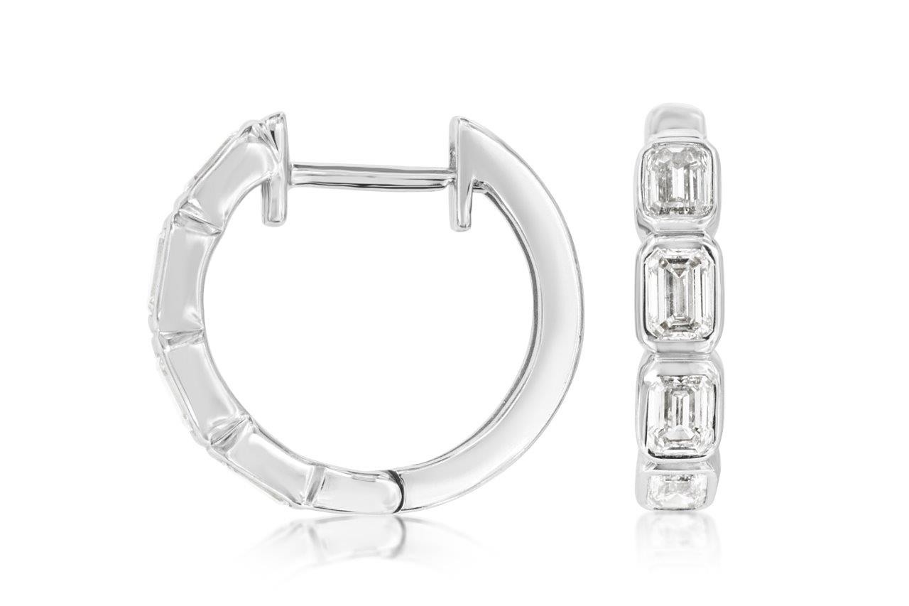 Discover the ultimate blend of modern elegance with our 14K White Gold Bezel Diamond Hoops. Each precisely cut diamond, securely set in a sleek bezel, captures and reflects light with dazzling brilliance, illuminating your every movement.