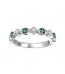 This eye-catching 10K White Gold Emerald and Diamond Stackable ring is set with four round Emeralds totaling 0.12 carats and 3 round-cut diamonds weighing 0.06 carats.