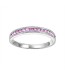 This stunning Stackable ring is crafted from 10K gold and channel set with pink sapphires bordered by a milgrain or beaded edge.