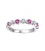 This eye-catching 10K White Gold Ruby and Diamond Stackable ring is set with four round Rubies totaling 0.21 carats and 3 round-cut diamonds weighing 0.06 carats.