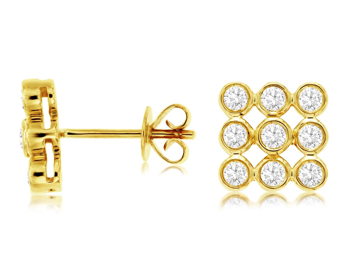 Experience pure brilliance with these earrings. Eighteen fiery round diamonds, totaling 0.60 carats, are expertly set in a modern square bezel design, floating elegantly on your ear.